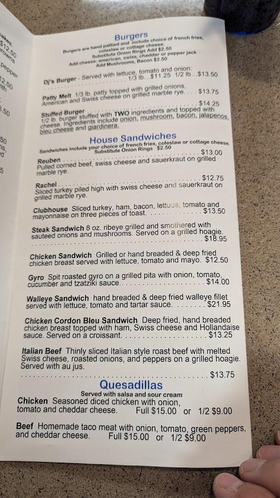 DJ's Northwoods Family Restaurant offers a diverse menu. From hearty breakfasts to satisfying dinners, there's something for everyone. Breakfast serves up classics like omelets and skillet dishes along with pancakes and stuffed French toast. During lunch and dinner, sandwiches take the spotlight, from Reubens to clubhouses, catering to all cravings. The baskets feature fried favorites, including local fish options like walleye and perch. Daily specials often highlight seasonal ingredients. A variety of beverages, including tasty hot cocoa, rounds out the offerings. Guests appreciate the generous portions and reasonable prices, making DJ's a fantastic choice in St. Germain.